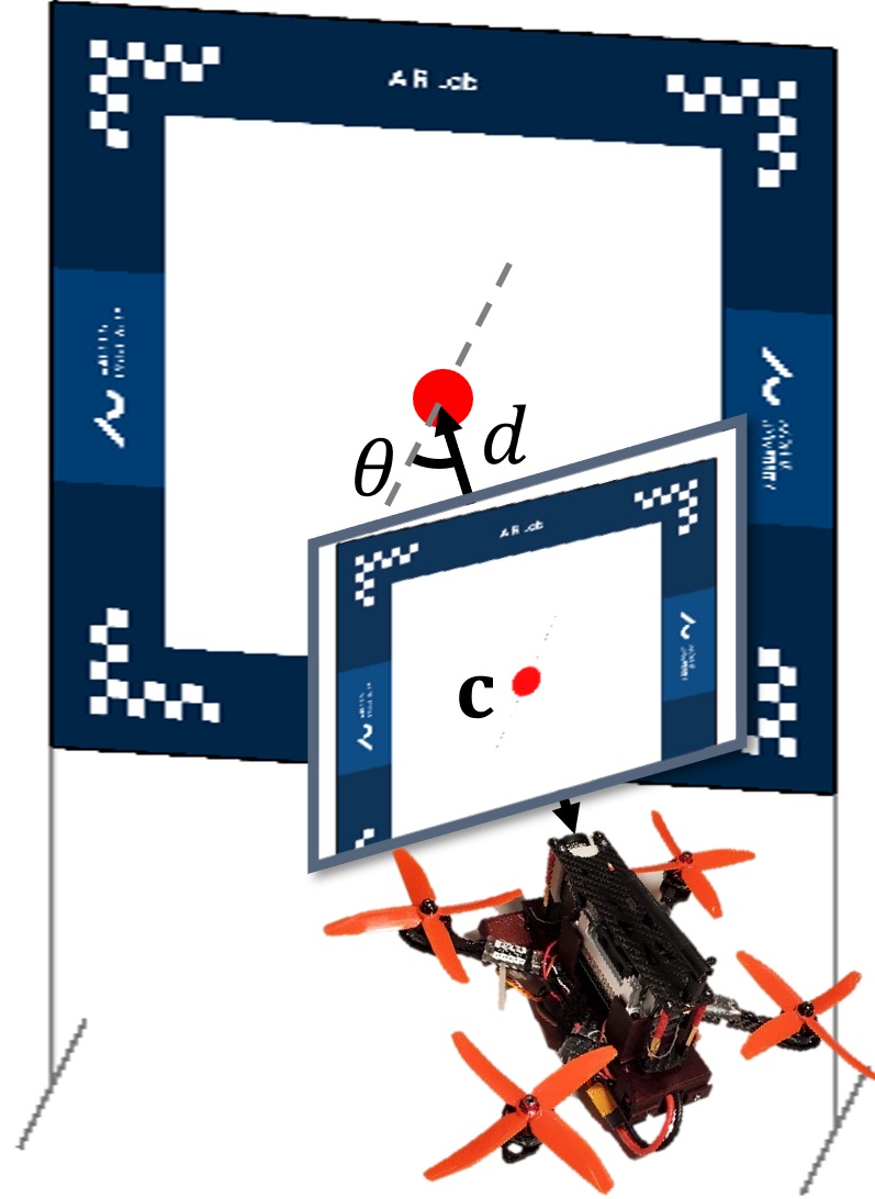 In this challenge, the task is to design 3D perception methods that can accurately estimate the location of a gate in Figure 2 relative to a global frame under various lighting conditions and motion blur due to the drone's high speeds. The detection consists in determining the x and y position of the gate's center c, distance d and orientation θ of the gate relative to the drone’s body frame. Participants are provided with a limited training dataset consisting of gate images from the drone and the associated ground-truth poses of gates and the drone in a global frame. They will be required to create a correct map of the gates in the testing dataset, given only the ground-truth pose of the drone.